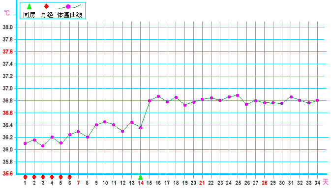 4、月经来潮和同房日须附加记号标示,遇有发烧饮酒过度晚睡晚起等会影响体温的状况,亦应特别注记说明。